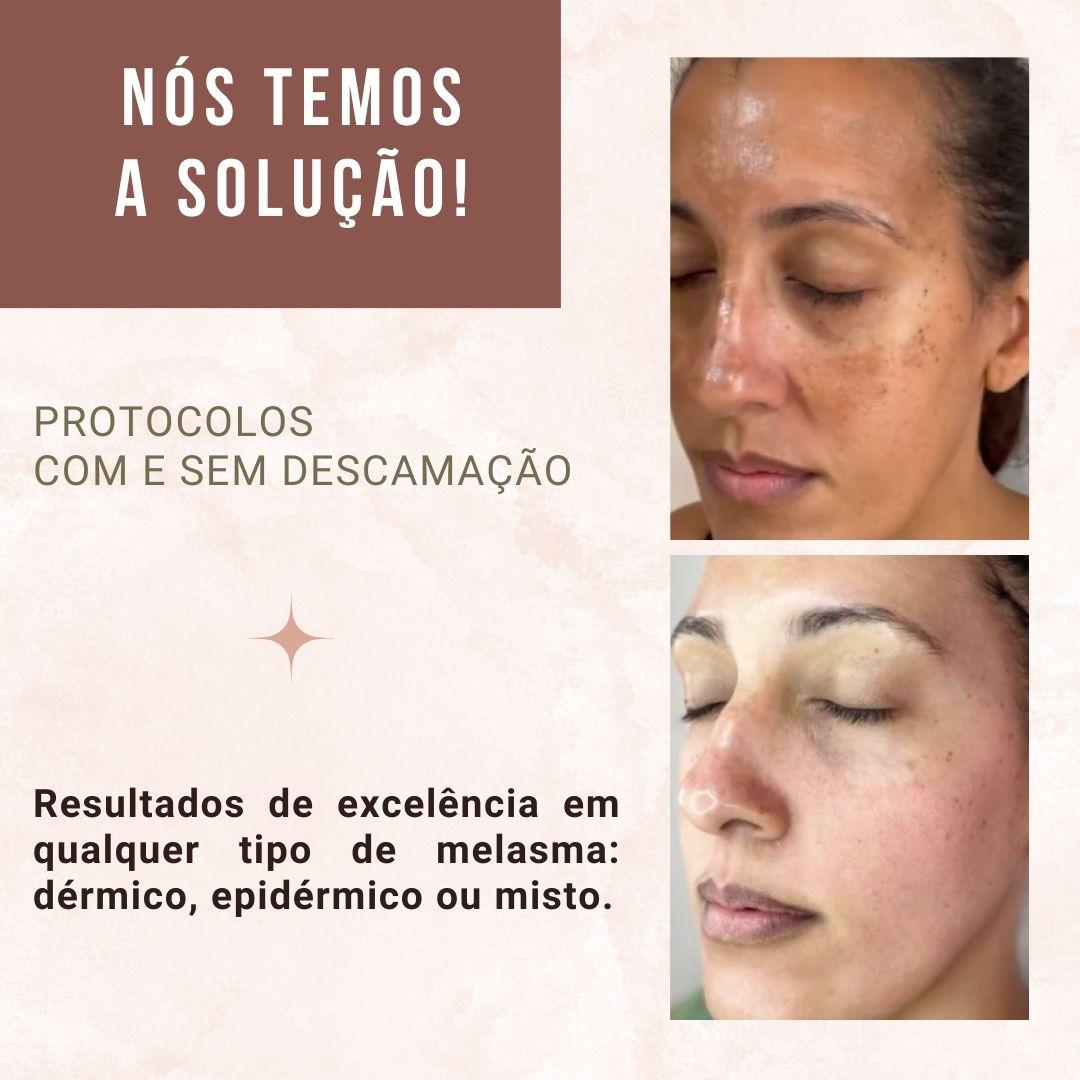 O tratamento eficaz do melasma resulta em uma pele mais radiante, uniforme e livre de manchas escuras, proporcionando uma aparência mais saudável e vibrante.